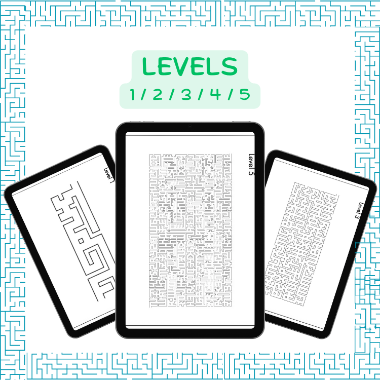 Border Maze Puzzle Book – Levels 1 to 5 | Challenging Maze Activity | Printable & Digital PDF (A4)