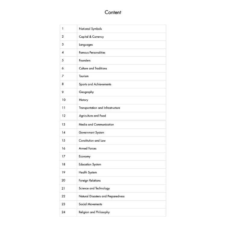 • Covers culture, history, geography, science, government, and more across 24 chapters