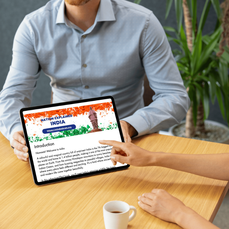 Take students on a fascinating journey across one of the world’s oldest, most diverse, and most vibrant nations with India – Nation Explained. This beautifully designed learning resource introduces children to India’s rich history, culture, geography, festivals, food, achievements, government structure, economy, technology, and so much more — all explained in simple, easy-to-understand language.